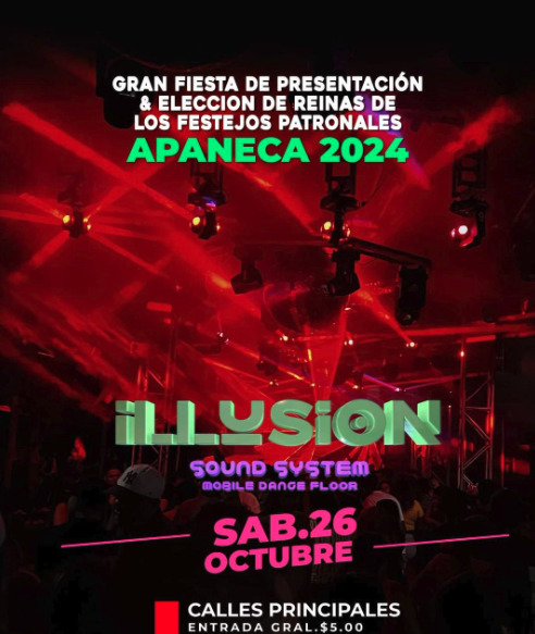 APANECA, AHUACHAPÁN. EN SUS FESTEJOS PATRONALES, LLEGA Illusion - Sound System EL NUEVO DANCE FLOOR QUE TIENE EL SALVADOR. ¡NO FALTES!