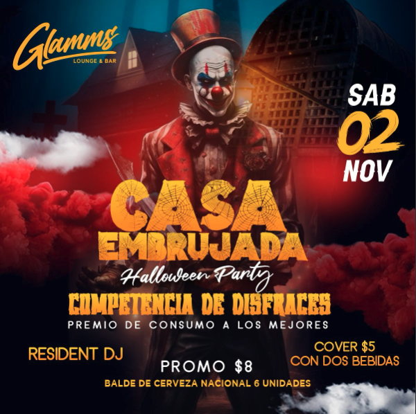 Sábado 2 de Noviembre 🍻🔥🎃🎃🎃🎃❤️Ponte tu mejor disfraz para CASA EMBRUJADAUna Halloween 👻 Party verdaderamente cool 😎 en Glamms 🖤🖤🖤🎃