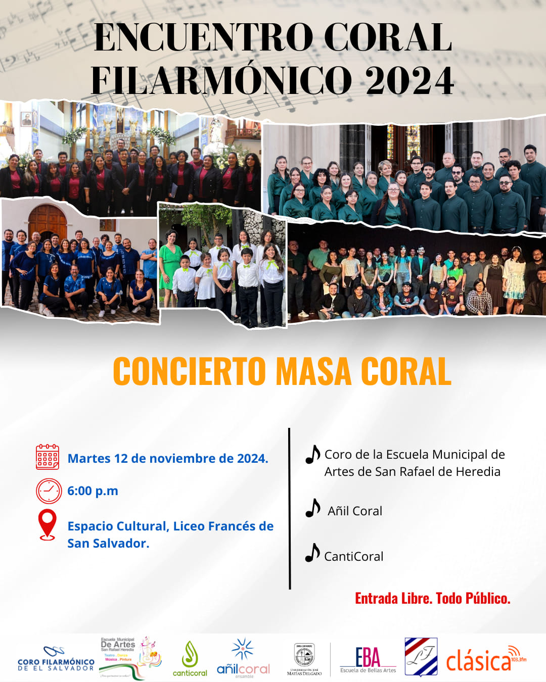 Estamos felices y orgullosos de anunciar el "Encuentro Coral Filarmónico 2024" en el que compartiremos escenario con el Coro de la Escuela Municipal de Artes de San Rafael Heredia. De Costa Rica. 🇸🇻🇨🇷🎶🎵🎙