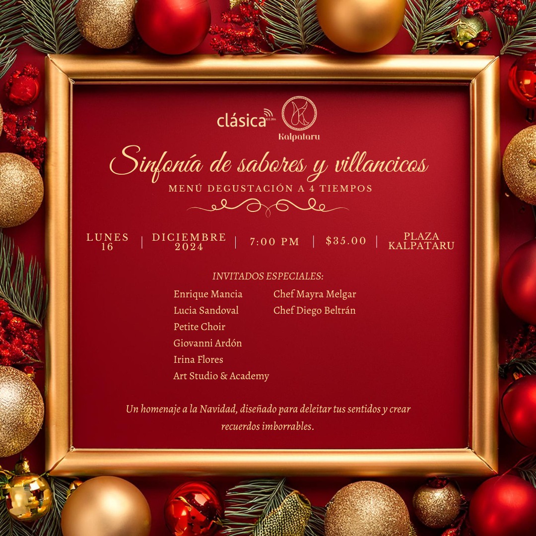 Te invitamos a "Sinfonía de Sabores y Villancicos", una noche mágica con un menú degustación de 4 tiempos diseñado para deleitar tus sentidos. 🍷🍽️