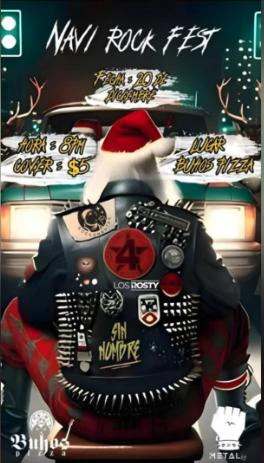 este viernes 20 de Diciembre, NAVI ROCK FEST !!SIN NOMBRE/ ROCKONAUTAS/ LOS ROSTY !!8:00 pmCover $5.00BUHOS PIZZA 🍕🍕 !! Somos pizza y musica Calle Berlin urbanizacion buenos Aires